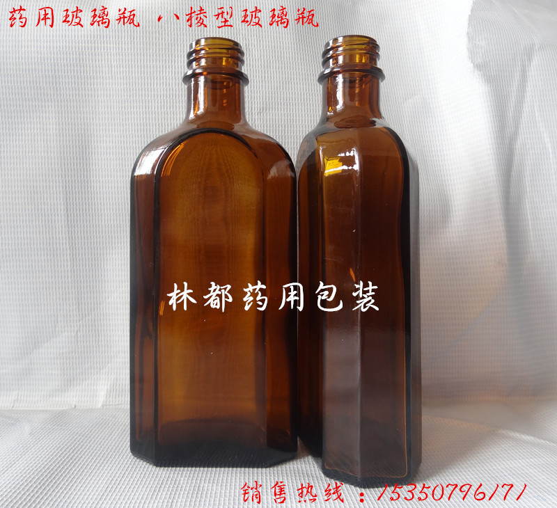 八棱药用玻璃瓶瓶型特殊,具有市场需求性,美观性,瓶口为螺旋口,有配套的盖子,密封性好,不漏液、不渗漏。是根据客户要求开模订制产品,瓶口较小,适合盛装水样药剂产品。